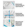 🧤 Elasticated Hood, Wrists, and Ankles – Ensures a secure fit and compatibility with PPE such as gloves and respirators.